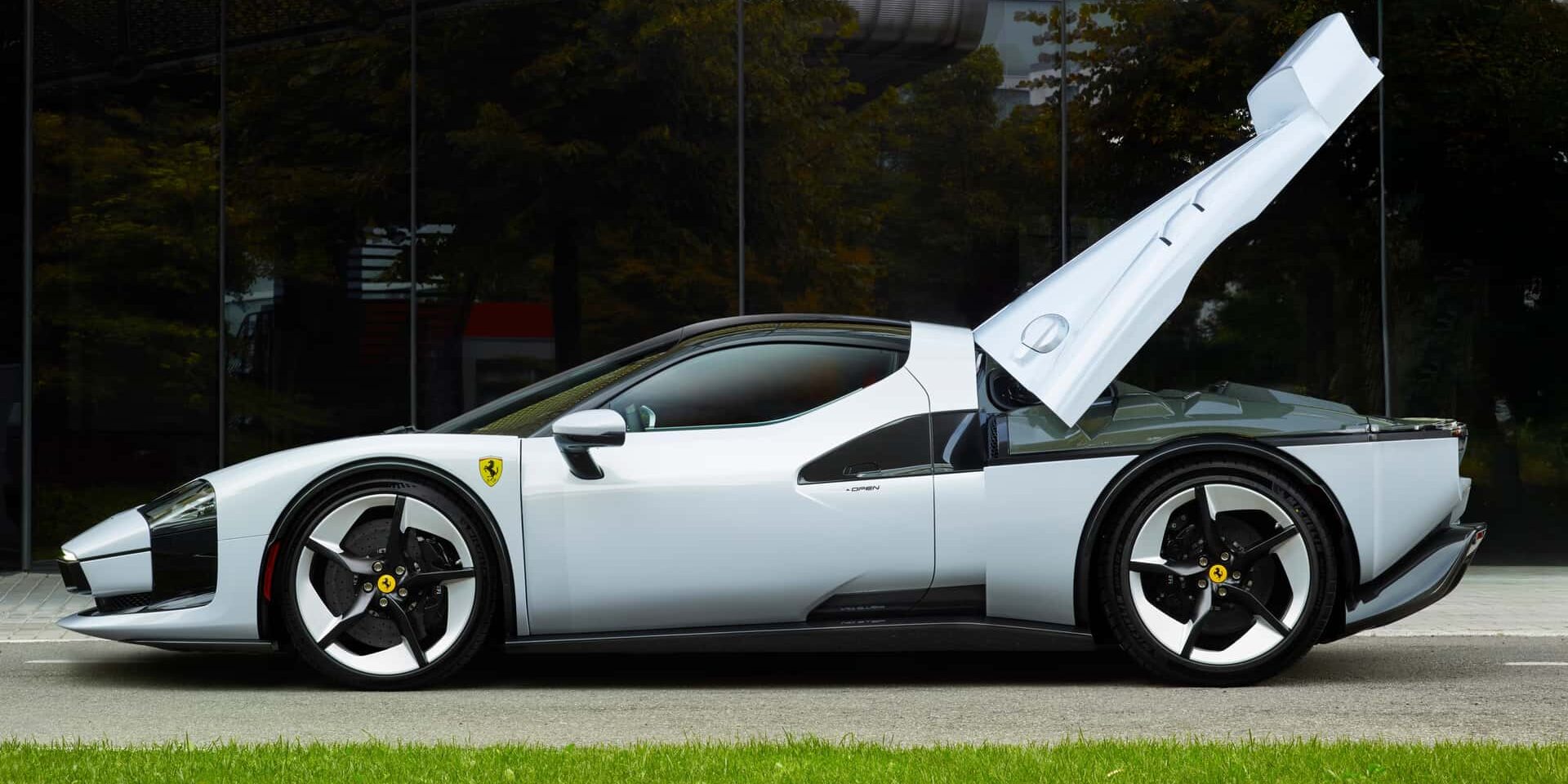 Dirigé par Flavio Manzoni, le Centre de Style Ferrari a réinterprété chaque ligne avec une exigence esthétique contemporaine. La carrosserie, entièrement repensée, mélange formes organiques et volumes géométriques, dans un dialogue entre l’ancien et le nouveau. Des matériaux comme le Lexan® fumé, la fibre de carbone apparente ou le tissu technique en jacquard rouge soulignent la sophistication technique du véhicule. La couleur unique Bianco SC40, commandée spécialement pour ce modèle, parachève l’individualisation extrême. Cette approche stylistique permet à Ferrari de pousser son design au-delà des contraintes industrielles habituelles. La SC40 n’a pas à séduire le marché – elle n’a qu’un seul client à convaincre.